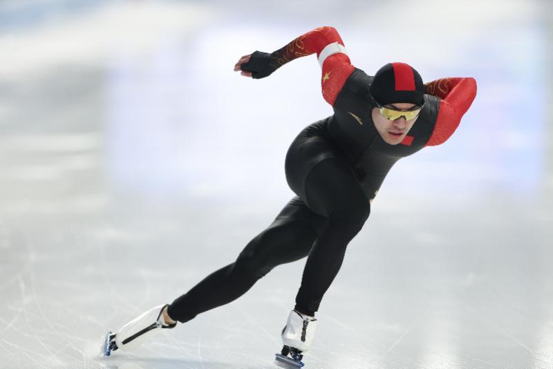 在第九届亚冬会速度滑冰男子1000米比赛中,中国选手宁忠岩夺得冠军。 新华社记者 王楷焱 摄