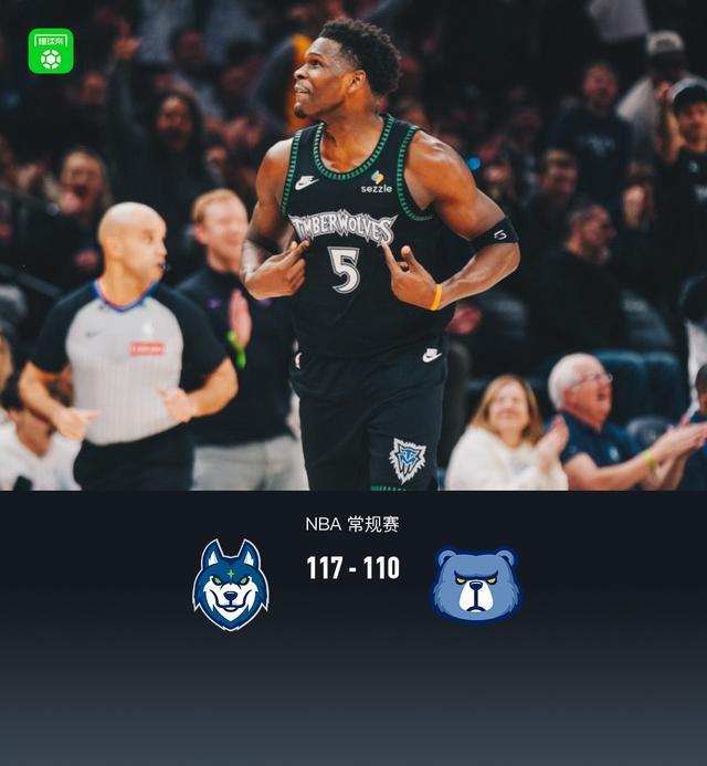 第四节森林狼爱德华兹拿下13分,灰熊考沃德拿下10分,最终森林狼117-110战胜灰熊
