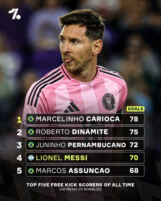 梅西距离成为历史定位球进球王仅差9个任意球 🎯